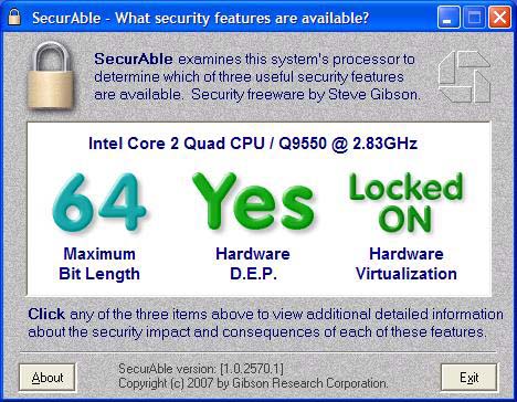 | Si el resultado de la comprobación anterior es que tenemos instalada una versión del sistema operativo de 64 bits, no necesitaremos actualizar a la nueva especificación. Si no es así y queremos comprobar si nuestra CPU admite esta arquitectura, basta con descargar y ejecutar la siguiente aplicación llamada SecurAble, que nos dirá en el apartado Maximum Bit Length la cantidad de bits soportado por nuestro procesador. En el caso de que el valor sea 64 podremos dar el salto a la versión x64 de Windows.