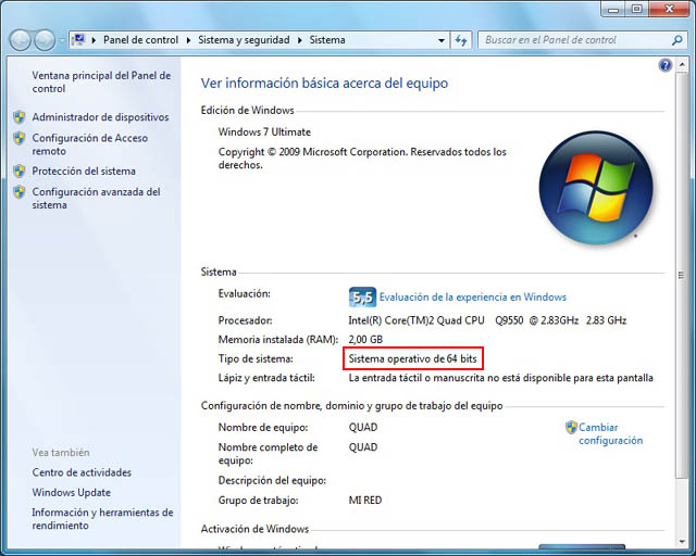 Para cerciorarnos de que podemos disfrutar de las bondades de este sistema, debemos verificar por un lado si nuestro sistema operativo actual es una versión de 32 bits o de 64 bits y por otro que nuestra CPU soporte esta arquitectura.
