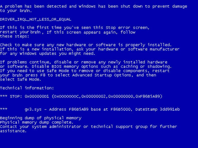 2. El ordenador se congela o aparecen las temidas pantallas azules de la muerte, atribuible en la mayoría de las ocasiones a problemas de hardware.